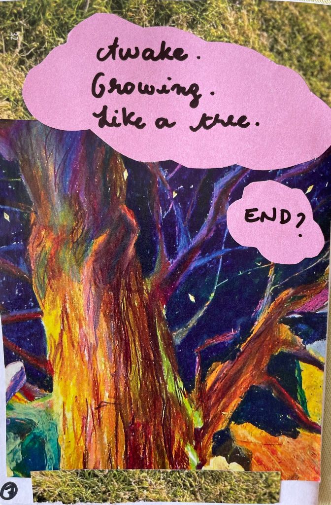 Zines are self-designed booklets or brochures. They can contain words, pictures, drawings and much more. In this workshop, we experimented with creative writing and collage techniques and design our own zines.