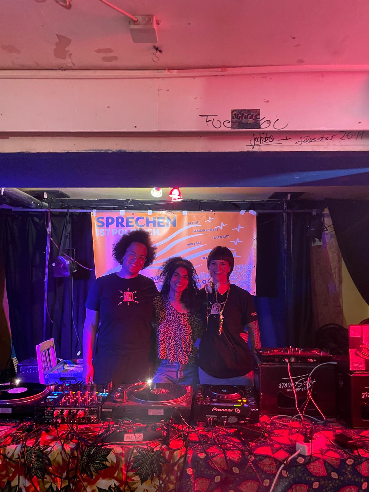 As a DJ, I work with politically charged sounds, shaping sets that move between old school hip hop, experimental beats, and global rhythms. Whether I’m playing for a club, an exhibition, or a community event, I see DJing as a cultural and political practice — a way to connect histories, voices, and energies that don’t always get space in the mainstream. My sets shift between celebration and critique, memory and movement.